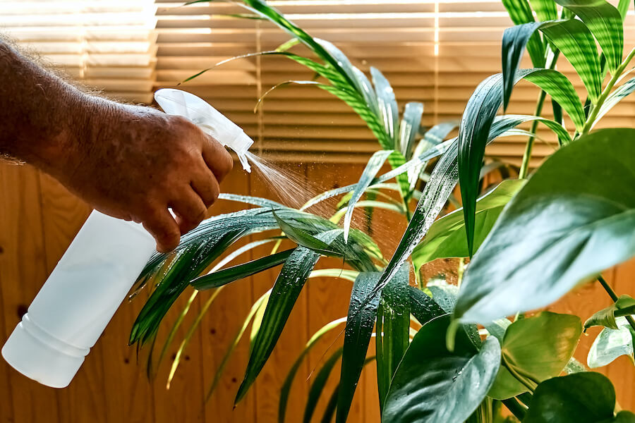 - Używaj drobnej mgiełki – zbyt duże krople wody mogą uszkodzić delikatne liście. Używaj spryskiwacza, który wytwarza drobną mgiełkę.