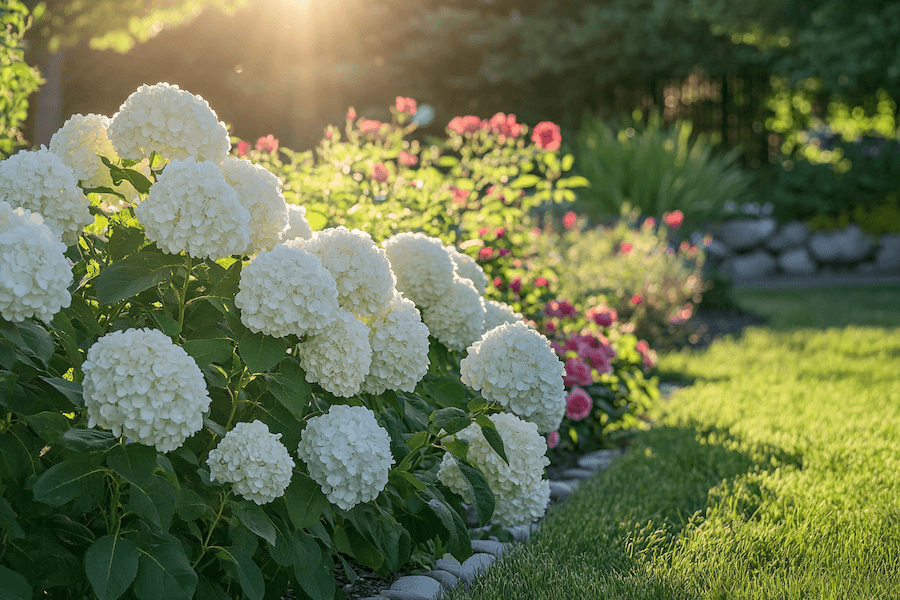 9. Romantyczny zakątek z białymi hortensjami