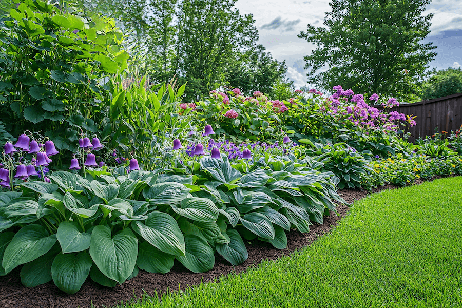 Połączenie niskich dzwonków z wyższymi funkiami to świetny sposób na uzyskanie różnorodności wysokości w zacienionym ogrodzie. Delikatne, dzwonkowate kwiaty wspaniale kontrastują z dużymi, często barwnymi liśćmi funkii, tworząc interesującą grę form i kolorów.
