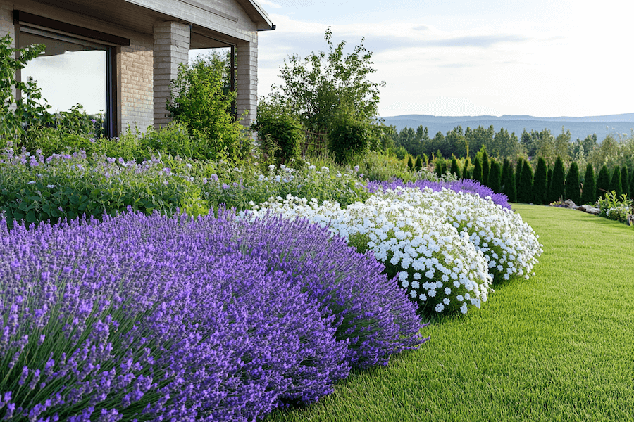 Szałwia omszona i lawenda to duet, który zachwyca nie tylko pięknem, ale i aromatem. Fioletowe kwiatostany obu roślin tworzą harmonijną kompozycję, która przyciąga wzrok i wprowadza spokój do ogrodu. Szałwia omszona kwitnie od czerwca do września, a lawenda od lipca do sierpnia, co zapewnia długotrwały efekt dekoracyjny.