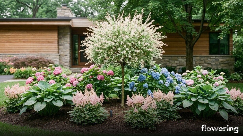 Najpiękniejsze rośliny towarzyszące wierzbie hakuro