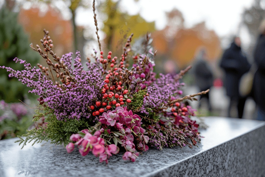 Najlepiej sprawdzą się tu wrzosy w odcieniach fioletu lub różu, zestawione z gerberami w żywych kolorach – pomarańczowym, różowym lub żółtym. Taka kompozycja będzie idealnym wyborem dla grobów osób, które za życia były znane ze swojego optymizmu i radosnego usposobienia.