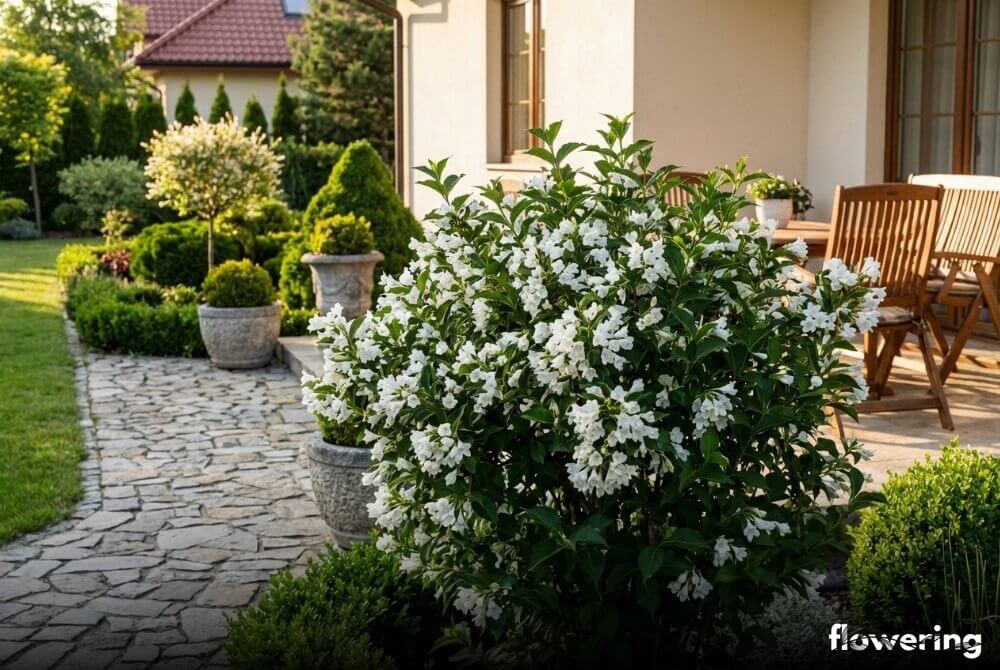 Krzewuszka to roślina niezwykle plastyczna w aranżacji. Dzięki różnorodności odmian pasuje niemal do każdego stylu ogrodowego. Świetnie sprawdza się jako soliter (pojedynczy okaz) na tle trawnika – jej luźny, fontannowy pokrój jest wtedy najlepiej wyeksponowany.