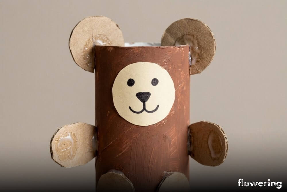 4. Doklej łapki górne po bokach rolki, a dolne przy jej podstawie, tak aby miś „siedział”.